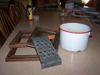 Well we are spending this Sat. night at home. We were expecting snow flurries here today and it snowed all day long~didn't stick~but the flakes were beautiful. we had our tag sale fundraiser~along with the snow. We had a pretty good crowd for snow. You know how sales go~they come in droves and then no one for a while. I did better than I thought I did. We each had to pay $15.00 for a table spot~I made $94.00 including what I spent. I posted a couple pictures of things I picked up. The little 4 drawer cubby was $2. I'll paint it up sometime~the wooden band box was $3. Ill decorate that up with some greenery this spring. I also bought a lg. pickle jar for .25~ and 2 pair of shorts for the daughter. It was open from 8-2 but I skipped out of there at noon. that snow was coming down so pretty and I knew I had things I could be doing at home. It seems if I'm gone all day on Sat. and then Sunday church I get nothing done and my weekend is gone before I know it. we do have spring break coming up in about two wks. The hubby is taking a wks vacation and we are laying new flooring down in the dining room and are going to try and reuse the dining room flooring in Taylors rm. We have never heard of anyone doing that. worst comes to worst well have to purchase more flooring for her rm. the flooring in the dining rm we layed a few yrs ago and it is a lighter shade than the living rm.~ so we have bought red oak to match up with the living rm. and are going to try and reuse the lighter flooring in Taylor's rm. We'll see how it goes. It's completely moving out two rms of furniture and repainting Taylors in the process. Should prove interesting. Mike and I do work well together usually.